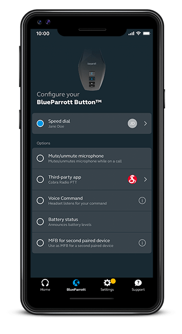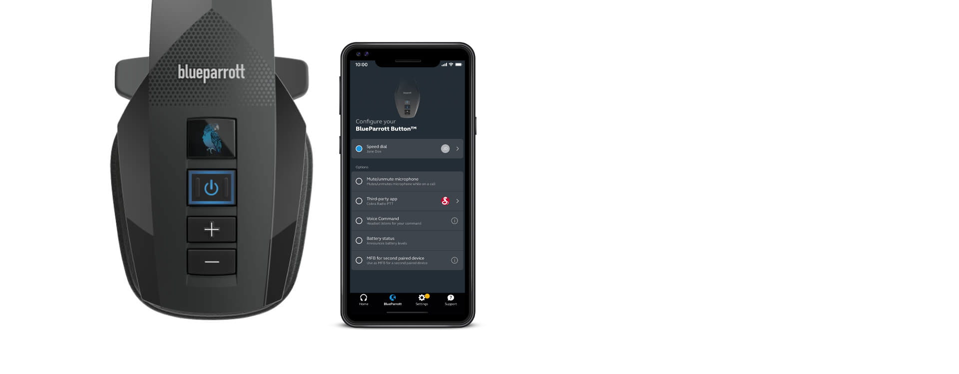 Hear Walkie Talkie voice messages from colleagues hands-free, without having to take out your mobile device. Just press the headset’s BlueParrott Button and talk to send a voice message.