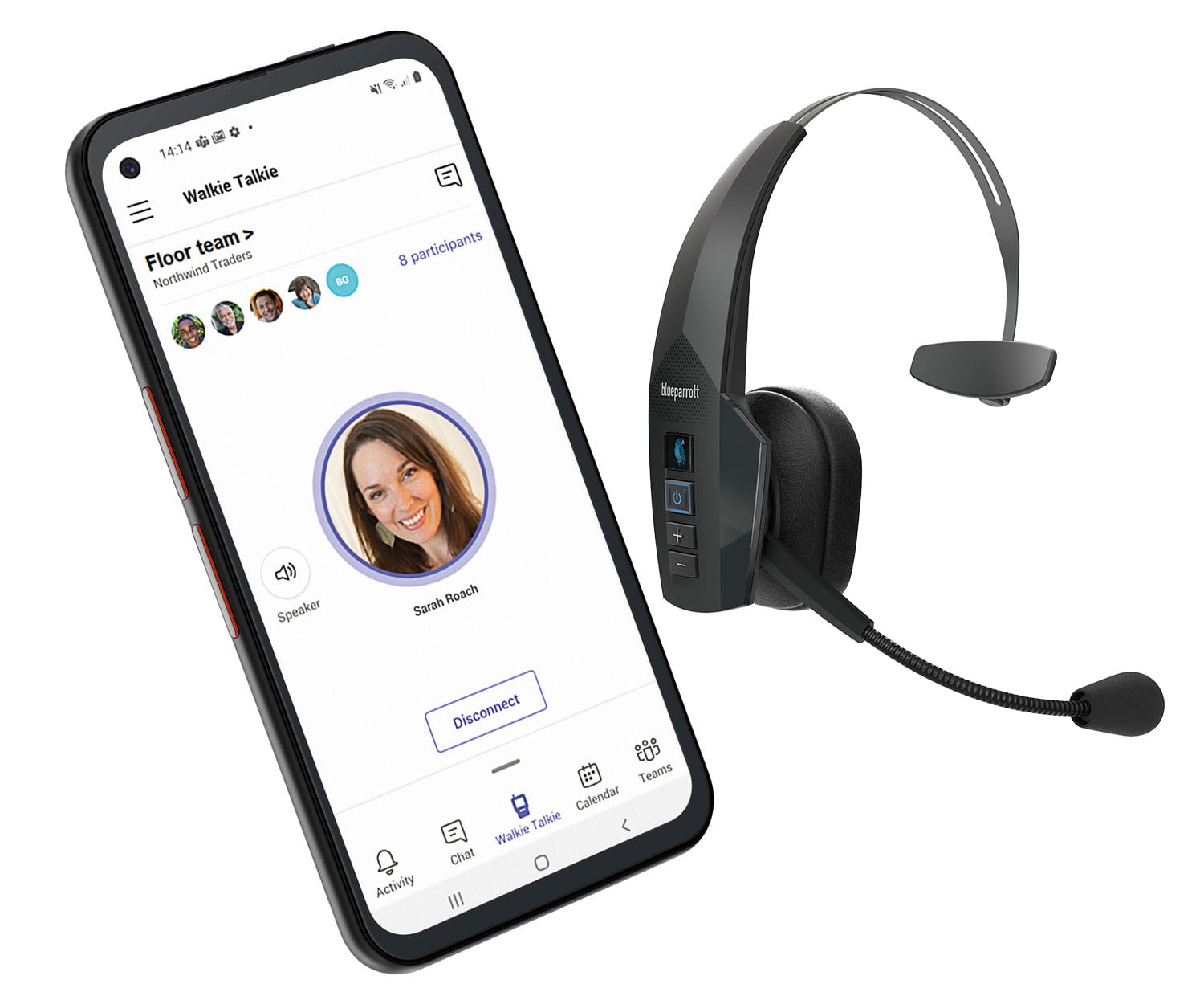 Microsoft Teams Walkie Talkie enables co-workers to use their mobile device* as a walkie-talkie for group conversations and keep distributed teams connected. The B350-XT comes with access to the Walkie Talkie feature already programmed into the headset’s BlueParrott Button™ for clear, instant collaboration.