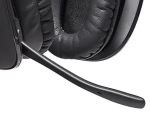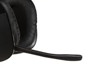 Pivoting microphone boom arm tucks neatly out of your way when you're not using it